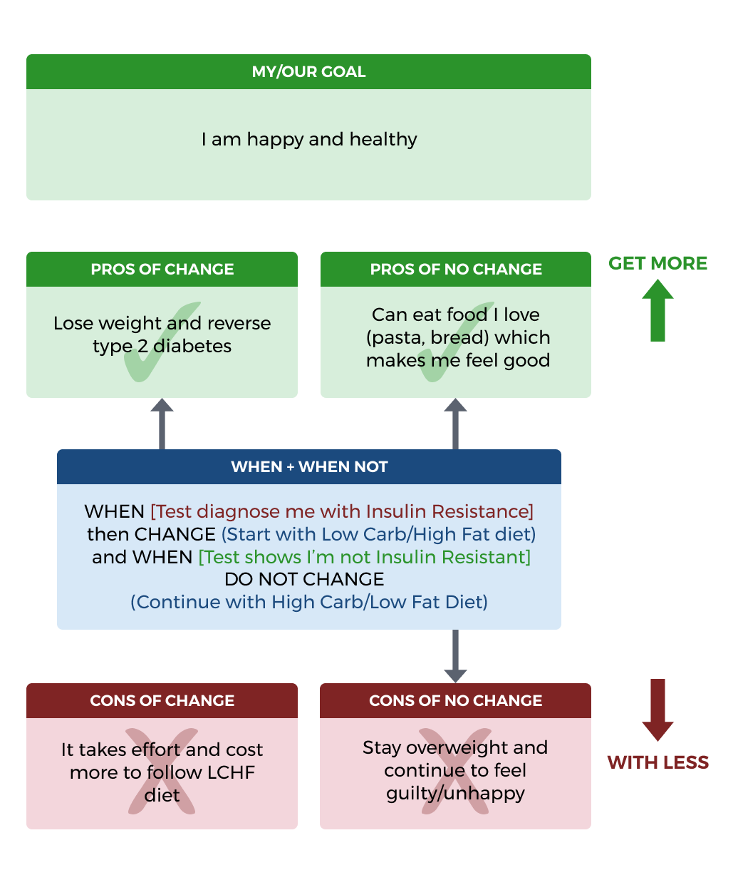 There are two ways to identify these additions - the SIMPLE and ADVANCED Resolution. Click on “RESOLVE” and then select either SIMPLE or ADVANCED Resolution and click inside boxes to enter your answers to the questions. Once completed, click on “OK” and then “Next Option” to try Option 2. Step 3.1 – The How… (Work Example)![]() Step 3.1 – The How… (Home Example)![]() Step 3.2 – The Why…![]() Step 3.2 – The What…Step 3.2 is how to RESOLVE YOUR AND THEIR Decision with OPTION 2 called NO CHANGE ++. In this Option, we treat the NO CHANGE as a half-baked solution and identify: