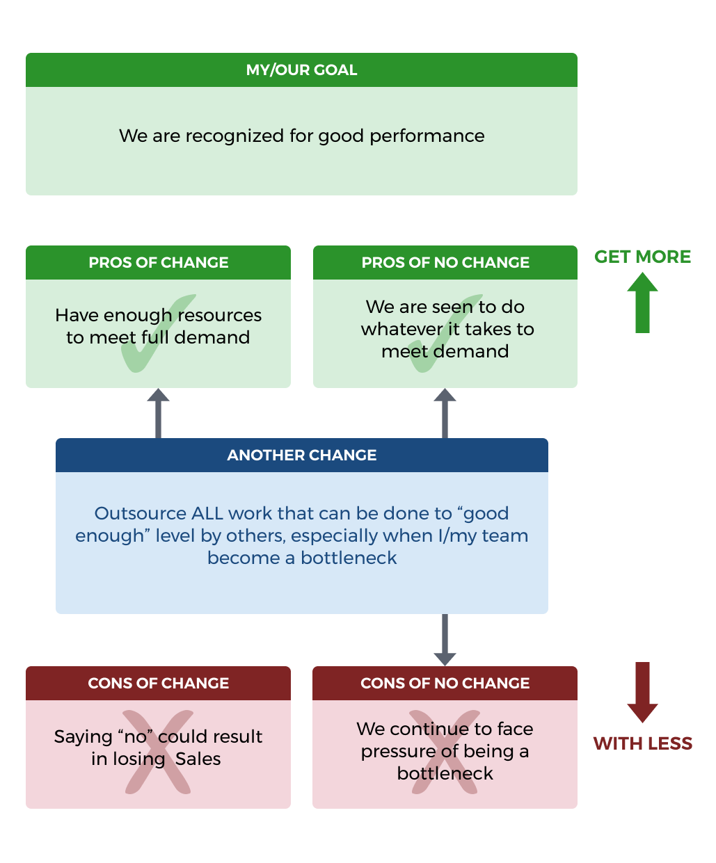 In the case where maintaining the STATUS QUO is not an option, the Decision will be between CHANGE vs. ALTERNATIVE CHANGE.